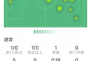 体育资讯1月8日讯 在本轮英超曼联对阵伯恩利的比赛中,海文乌龙送礼,以下为他在本场数据::