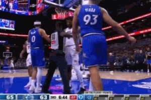 拉拉维亚干扰贝利强突被吹犯规&湖人挑战成功 双方中圈跳球