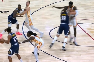 GIF-戈登与丹尼尔斯爆发口角,哈达威和华莱士也起强突