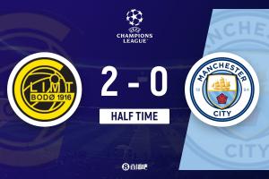 体育资讯1月21日讯 北京时间1:45,欧冠联赛阶段第7轮博德闪耀vs曼城,比赛在阿斯米拉体育场打响!上半场,阿莱恩被断送礼,布隆伯格两送助攻,霍格2分钟梅开二度。半场结束,曼城暂0-2落后博德闪耀。