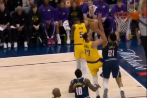 GIF-詹姆斯反击助攻东契奇对抗上篮2+1