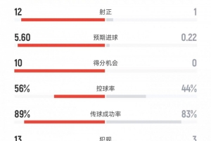预期进球——5.6比0.22
