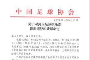 一、扣除河南足球俱乐部2026赛季相应的职业联赛积分6