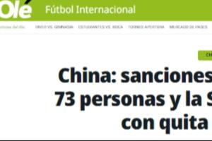 此外,当局还宣布对73名与足球有关的人员处以终身禁赛,其中包括中国国家队的一名前教练、一名球员以及亚洲足联的一名前主席。