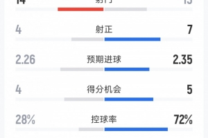 体育资讯2月1日讯 在本轮德甲,拜仁2-2战平汉堡,以下为双方全场数据对比: