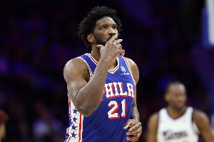 赛季至今,恩比德场均得到26.1分7.4篮板3.8助攻0.7抢断1.1盖帽。