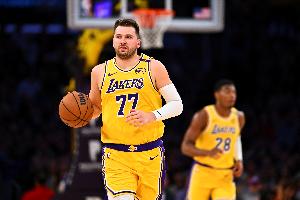 上半场,湖人球星东契奇左腿筋不适返回更衣室,下半场回来他仍留在更衣室检查没有回归,八村塁顶替其首发出场。