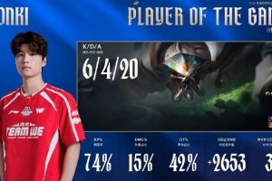 体育资讯2月9日讯 在刚刚结束的WE对阵TES的对局中,Monki使用蝎子打出6/4/20战绩,斩获WE对阵TES第一局MVP。