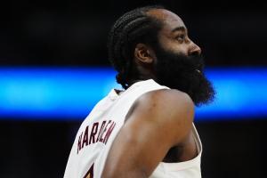 上半场,骑士后卫哈登表现一般,出场17分钟8投3中,三分2中0、罚球3中3拿到9分5篮板1助攻2盖帽,正负值-7。