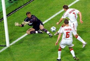 舍甫琴科:“没有,那全是胡扯。在职业球队里不会发生这种事。发生的一切都是足球的一部分,有时你找不到原因。我有两次机会,杜德克做出了超神扑救,之后我们有6分钟完全断电。他们的门将对我创造的奇迹我至今无法解释,我的射门已经做到了最好,球本可以进却没进,这就是生活的一部分。我三四个月没睡着觉,那是沉重的打击。”