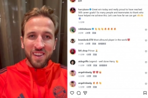 体育资讯2月15日讯 拜仁在本轮德甲3-0完胜不莱梅,凯恩本场梅开二度,并解锁了生涯500球里程碑。