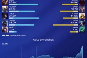 体育资讯2月15日讯 今日LCK季后赛上,T1首局不敌BFX,赛后数据面板显示Faker沙皇全场输出倒数第三,仅比两位辅助高!