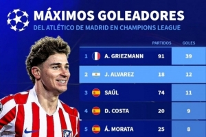 体育资讯2月19日讯 欧冠淘汰赛附加赛首回合比赛,阿尔瓦雷斯点射破门,马竞客场3-3战平布鲁日。