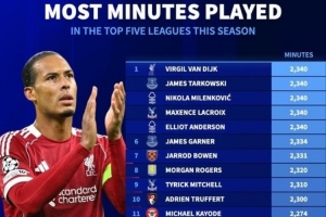 体育资讯2月21日讯 德转统计本赛季欧洲五大联赛中出场时间最长的球员前20名榜单,利物浦的范戴克以2340分钟的出场时间位居榜首。