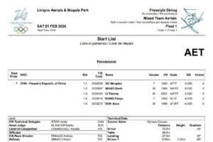 体育资讯2月21日讯 米兰冬奥会自由式滑雪空中技巧混合团体赛决赛将于北京时间2月21日17点45分进行,中国队将于最后一位出场。