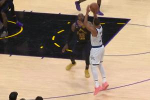 拉拉维亚干扰贝利强突被吹犯规&湖人挑战成功 双方中圈跳球