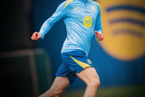 世体报巴萨训练情况:马丁在健身房内接受治疗,贝尔纳尔单独训练