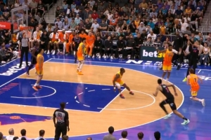 心情不错!德罗赞和威少开拓者主场观战耐克峰会 两人有说有笑