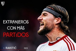 此役34岁塞尔维亚中卫古德利首发踢满全场,塞维利亚官方确认,他成为队史出场第5多的外援。