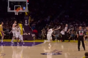 心情不错!德罗赞和威少开拓者主场观战耐克峰会 两人有说有笑