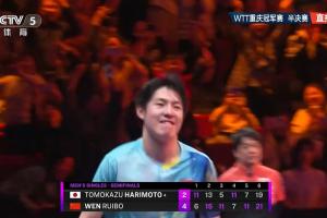 体育资讯03月15日讯 WTT冠军赛重庆站男单半决赛,19岁中国选手温瑞博4-2击败张本智和,闯入决赛,将与小勒布伦争夺冠军。