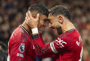 本场比赛卡塞米罗破门,他在本赛季英超已经打进7粒进球,进球数追平队友B费。