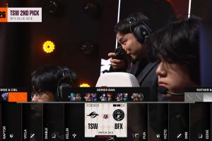 体育资讯03月19日讯 BFX VS TSW比赛第三局,赛前BP阶段直播UI出现问题,双方队名反了👇