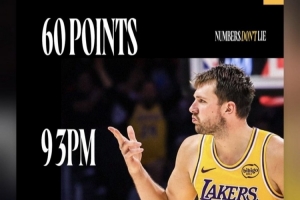 赛后,拉拉维亚更新社媒,晒出了东契奇的数据,同时写道:“我只说三点,60分、9三分、5抢断!”