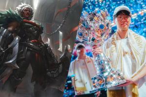 Doran:冠军皮肤吗?我觉得做的还不错,我自己挺满意的。稍微透露一下,我有问拳头能不能把安蓓萨做的再年轻一点,因为她现在有点老奶奶的形象,但他们说不行