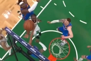 体育资讯3月27日讯 昨日绿军119-109战胜雷霆,赛后杰伦·布朗在直播时谈到了本场多特对自己上篮的一次粗野防守。
