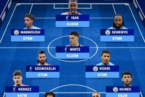 前锋:马尔穆什(曼城,7500万)、伊萨克(利物浦,1.45亿)、塞梅尼奥(曼城,7000万)