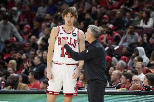 首节比赛,公牛首发表现十分糟糕,五人合计投篮10中0没有进入入账,仅布泽利斯和特雷·琼斯两人通过罚球共拿到2分。