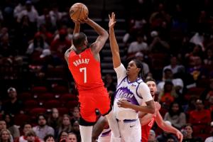 体育资讯04月04日讯 NBA常规赛,火箭在主场以140-106大胜爵士,豪取五连胜。