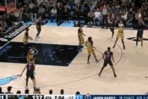拉拉维亚干扰贝利强突被吹犯规&湖人挑战成功 双方中圈跳球