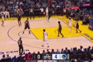 心情不错!德罗赞和威少开拓者主场观战耐克峰会 两人有说有笑