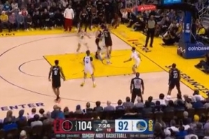 心情不错!德罗赞和威少开拓者主场观战耐克峰会 两人有说有笑
