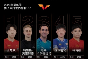 体育资讯4月6日讯 国际乒联2026年第15周世界排名公布,男子单打,中国队球员王楚钦位列第一,林诗栋位列第五。女子单打,中国队球员孙颖莎、王曼昱、陈幸同、蒯曼位列前四。