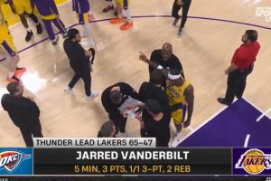 体育资讯04月08日讯 NBA常规赛,湖人87-123惨负湖人,范德彪赛中与主帅雷迪克发生口角,随后直接被DNP。