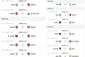 曼城少赛1场距榜首阿森纳6分,两队还有一场天王山之战下轮打响。两队赛程对比如上图。