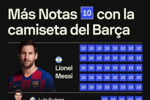 体育资讯4月13日讯 Sofascore统计了有评分以来球员巴萨生涯的10分场次,并列出榜单,梅西40场断层居首。