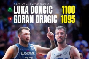根据数据统计,此战之后,东契奇的国家队生涯总得分来到1100分,他超越德拉季奇,成为了斯洛文尼亚男篮队史得分王。