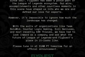 体育资讯9月5日讯 今日,美洲赛区俱乐部FlyQuest在X上发文,疑似将退出联赛。