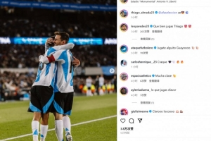 队友帕雷德斯也现身评论区鼓励道:“踢得真好,蒂亚戈!”