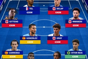 中场:吉滕斯(英格兰,5000万)、尼科-冈萨雷斯(西班牙,4000万)、阿奇-格雷(英格兰,3800万)、恩瓦内里(英格兰,5500万)