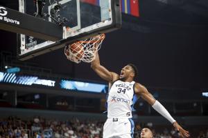 今年欧锦赛至今,字母哥出场4次,场均上阵28.8分钟可以砍下30分9.8篮板4助攻,投篮命中率是72.5%,三分命中率是33.3%,罚球命中率为61.3%,场均正负值+15.3,平均效率值为33.5。