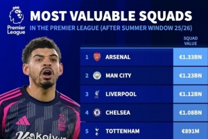 体育资讯9月9日讯 诺丁汉森林官方宣布主帅努诺离任,德国转会市场列出了英超球队身价排名,诺丁汉森林排名第8位,仅低于BIG6球队和纽卡。