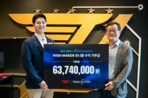 T1从今年四月开始参与国际非营利组织Make A Wish Kore的活动,决定捐赠印有队伍和财团标志的Wish Maker队服的销售收入。
