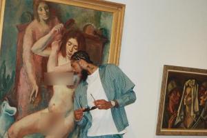 英格拉姆近期更新动态,晒出了一张和油画的超大尺度互动……