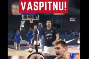 塞尔维亚VS芬兰的赛前热身时,约基奇走过约维奇身边给了一巴掌,约维奇有点懵。