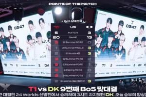 体育资讯9月10日讯 今日,LCK季后赛将迎来DK对阵T1的比赛,赛前官方直播间给出T1 vs DK历史BO5交手记录:T1大场5胜3负,小场20胜13负,具体战绩如图。